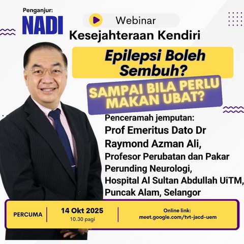 Webinar NADI x Wellbeing yang berlangsung pada 14 Oktober 2025 melalui google meet bertujuan untuk memberi pendedahan tentang rawatan epilepsi, tempoh pengambilan ubat, dan harapan untuk sembuh sepenuhnya, menunjukkan bahawa isu ini adalah topik perbincangan penting dalam komuniti perubatan.
