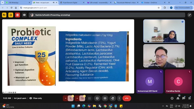 18 Oktober 2025 | Aktiviti TerkiniPelajar daripada komuniti Teluk rimba telah menyertai Kelas Webinar Gut Health Kunci Badan Sihat Tapi Ramai Tak Jaga Sampai Sakit – Webinar Kepentingan Kesihatan Kunci Badan Sihat Tapi Ramai Tak Jaga Sampai Sakit berlangsung secara dalam talian menggunakan link google meet.
