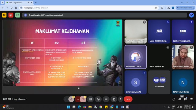 10 Oktober 2025 | Aktiviti TerkiniPelajar daripada komuniti Teluk rimba telah menyertai Kelas Esukan – Kepentingan Kesihatan dalam e-sukan berlangsung secara dalam talian menggunakan laman sesawang NADI E-Sukan di NADI Teluk Rimba.